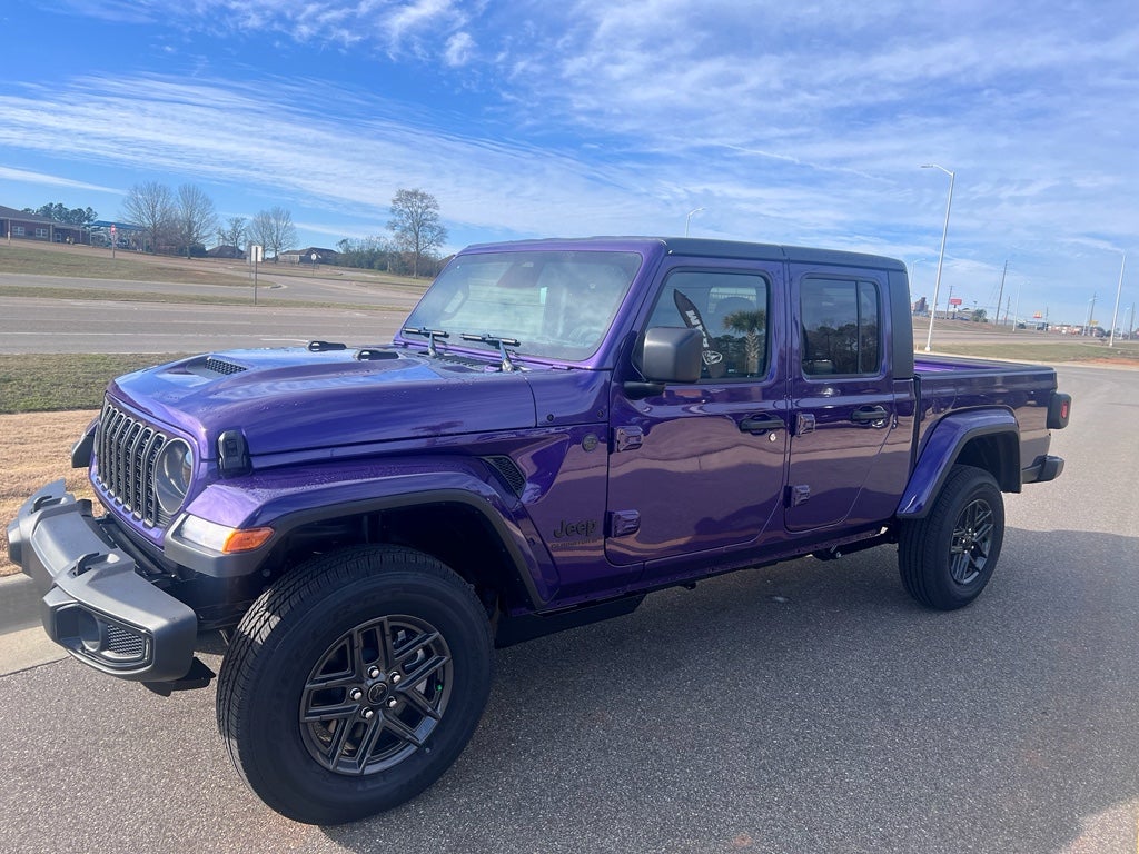This 2026 Jeep Gladiator comes equipped with Android Auto for seamless smartphone integration on the road. Apple CarPlay: Seamless smartphone integration for this 2026 Jeep Gladiator - stay connected and entertained on the go! An off-road package is equipped on this vehicle. This Jeep Gladiator's Forward Collision Warning feature alerts drivers to potential front-end collisions. Bluetooth® technology is built into the Jeep Gladiator, keeping your hands on the steering wheel and your focus on the road. See what's behind you with the back up camera on the vehicle. This model has a V6, 3.6L high output engine. This model emanates style with a deep royal purple finish. This 2026 Jeep Gladiator has four wheel drive capabilities. Electronic Stability Control is one of many advanced safety features on this Jeep Gladiator. Enjoy the tried and true gasoline engine in the vehicle. This vehicle has an automatic transmission. The Jeep Gladiator has heated side mirrors to keep your vision clear in winter weather.