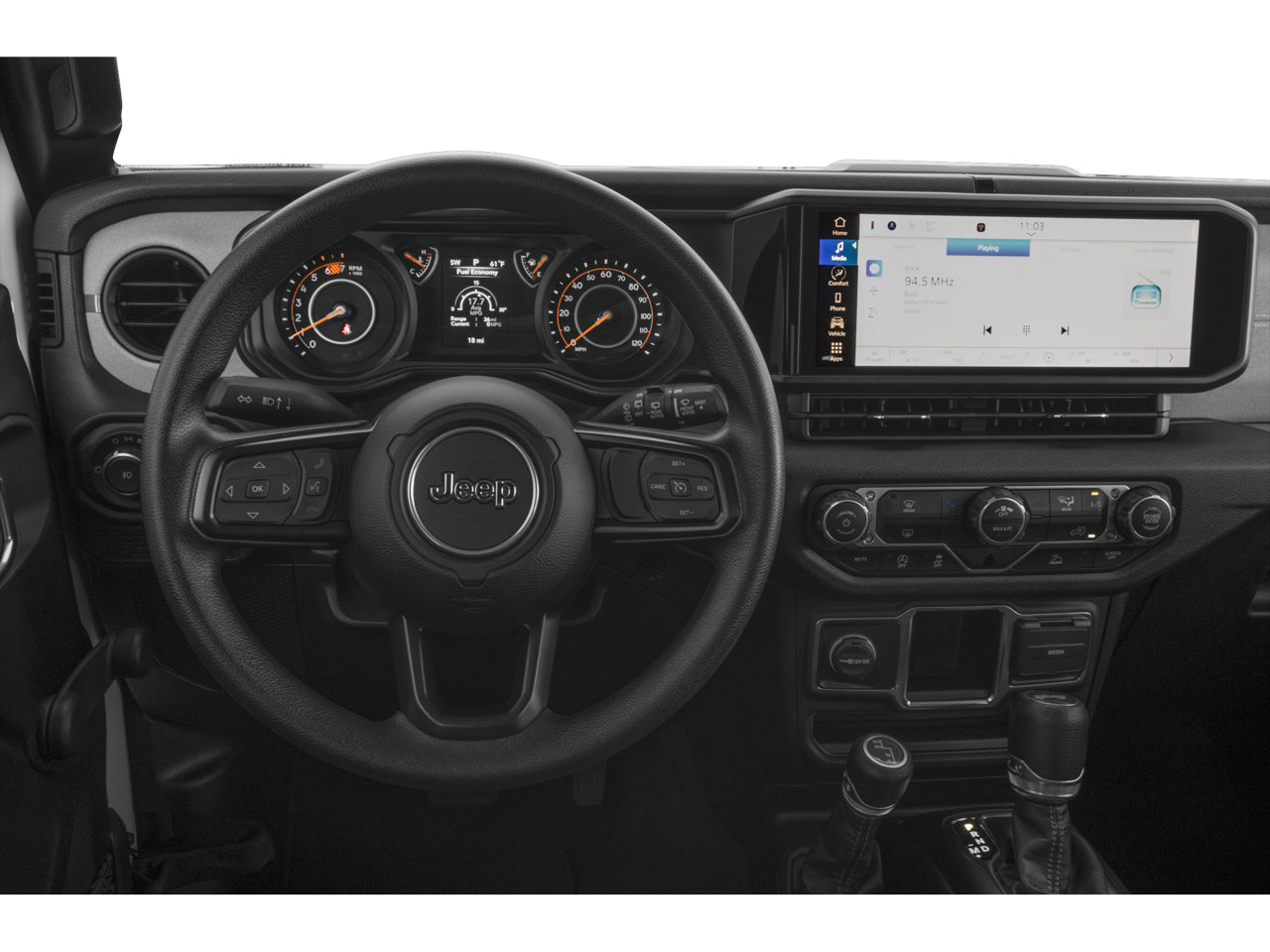 Bluetooth® technology is built into the Jeep Wrangler, keeping your hands on the steering wheel and your focus on the road. This unit offers Apple CarPlay for seamless connectivity. See what's behind you with the back up camera on the vehicle. This Jeep Wrangler's Forward Collision Warning feature alerts drivers to potential front-end collisions. An off-road package is installed on the Jeep Wrangler so you are ready for your four-wheeling best. This 2026 Jeep Wrangler offers Android Auto for seamless smartphone integration. It has auto-adjust speed for safe following. When you encounter slick or muddy roads, you can engage the four wheel drive on this 2026 Jeep Wrangler and drive with confidence. This mid-size suv projects refinement with a racy metallic gray exterior. Set the temperature exactly where you are most comfortable in this unit. The fan speed and temperature will automatically adjust to maintain your preferred zone climate. This vehicle has a 4 Cyl, 2.0L high output engine.