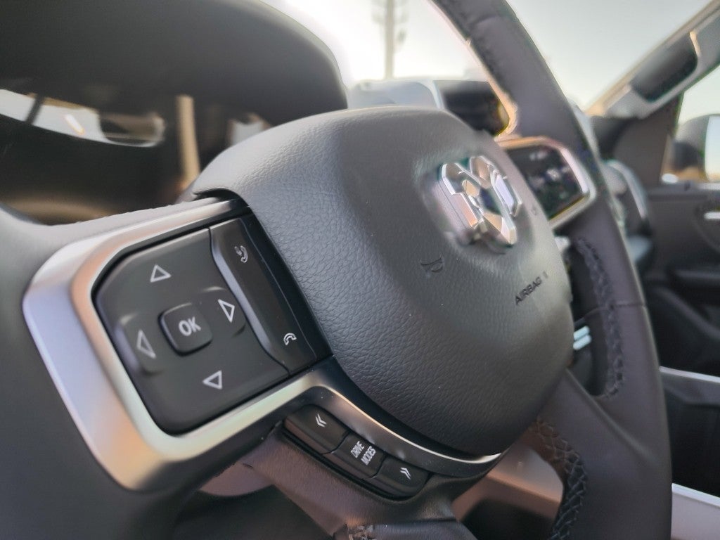 Quick Order Package 27Z Big Horn. Big Horn Level 2 Equipment Group: Google Android Auto; SiriusXM Radio Service; USB Host Flip; Power Adjustable Pedals; Leather Wrapped Steering Wheel; Integrated Voice Command with Bluetooth®; 12" Touchscreen Display; Glove Box Lamp; Auto Power-Folding Mirrors; 115V Auxiliary Rear Power Outlet; Media Hub with 2 Charge Only USBs; Heated Front Seats; Security Alarm; Black Premium Power Mirrors; Apple CarPlay; Premium Overhead Console; 9 Amplified Speakers with Subwoofer; Disassociated Touchscreen Display; Body Color Fender Flares; Remote Tailgate Release; 115V Auxiliary Power Outlet; LED Dome Lamp with On/off Switch; Universal Garage Door Opener; 2nd Row in Floor Storage Bins; Sun Visors with Illuminated Vanity Mirrors; LED Footwell Lighting; Rear Window Defroster; Integrated Center Stack Radio; Rear View Auto Dim Mirror; Rear Power Sliding Window; Connectivity - US/Canada; GPS Navigation; 4G LTE Wi-Fi Hot Spot; GPS Antenna Input; Overhead LED Lamps; Exterior Mirrors with Heating Element; Auto Dim Exterior Driver Mirror; SiriusXM with 360L; Global Telematics Box Module; Connected Travel and Traffic Services; Heated Steering Wheel; Configurable Drive Mode; 400W Inverter; HD Radio; Deluxe Cloth Bucket Seats; Uconnect 5 Navigation with 12.0" Display Radio; Exterior Mirrors with Supplemental Signals; Steering Wheel Mounted Audio Controls; Exterior Mirrors Courtesy Lamps; Air Conditioning ATC with Dual Zone Control; Cluster 7.0" TFT Color Display; Convex Wide-Angle Exterior Mirror Insert. Night Edition: 275/55R20 OWL All Season Tires; Accent Color Premium Power Mirrors; Exterior Mirrors with Supplemental Signals; Black Headlamp Bezels; Exterior Mirrors Courtesy Lamps; Grille Black Surround Black Mesh; Auto Power-Folding Mirrors; Exterior Mirrors with Heating Element; 20" X 9.0" Aluminum Painted Clad Wheels; Auto Dim Exterior Driver Mirror; Black Exterior Truck Badging; Anti-Spin Differential Rear Axle; Accent Color Door Handles; Accent Color Tailgate Handle; Black Interior Accents; Dual Exhaust with Black Tips; Body Color Front Bumper; Convex Wide-Angle Exterior Mirror Insert; Body Color Rear Bumper with Step Pads; Black Tail Lamp Bezels; RAM Grille Badge - Black; Black Painted Exterior Mirrors Caps. Bed Utility Group: MOPAR Spray in Bedliner; MOPAR Deployable Bed Step; MOPAR 4 Adjustable Cargo Tie-Down Hooks; Pick-Up Box Lighting; Exterior 115V AC Outlet. Quick Order Package 23Z Big Horn. Dual-Pane Panoramic Sunroof. 9 Amplified Speakers with Subwoofer. Anti-Spin Differential Rear Axle. 33 Gallon Fuel Tank. Forged Blue Metallic. Rear Underseat Compartment Storage. Cluster 12" TFT Color Display. 3.92 Rear Axle Ratio. **Equipment listed is based on original vehicle build and subject to change. Please confirm the accuracy of the included equipment by calling the dealer prior to purchase.**