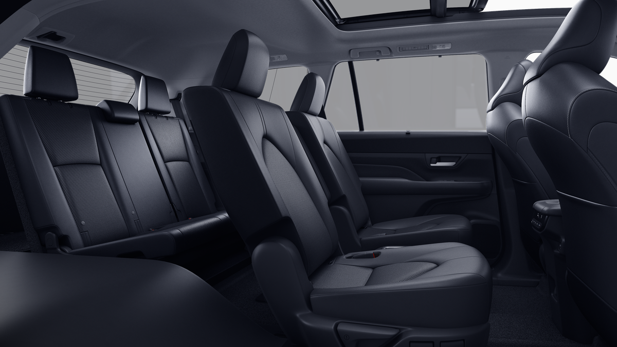 - 7-passenger seating with second-row fold-down captain's chairs and fold-down inboard armrests, adjustable headrests and two cup holders mounted on the floor; and 60/40 split, fold-down third-row seats with sliding headrests and recline function