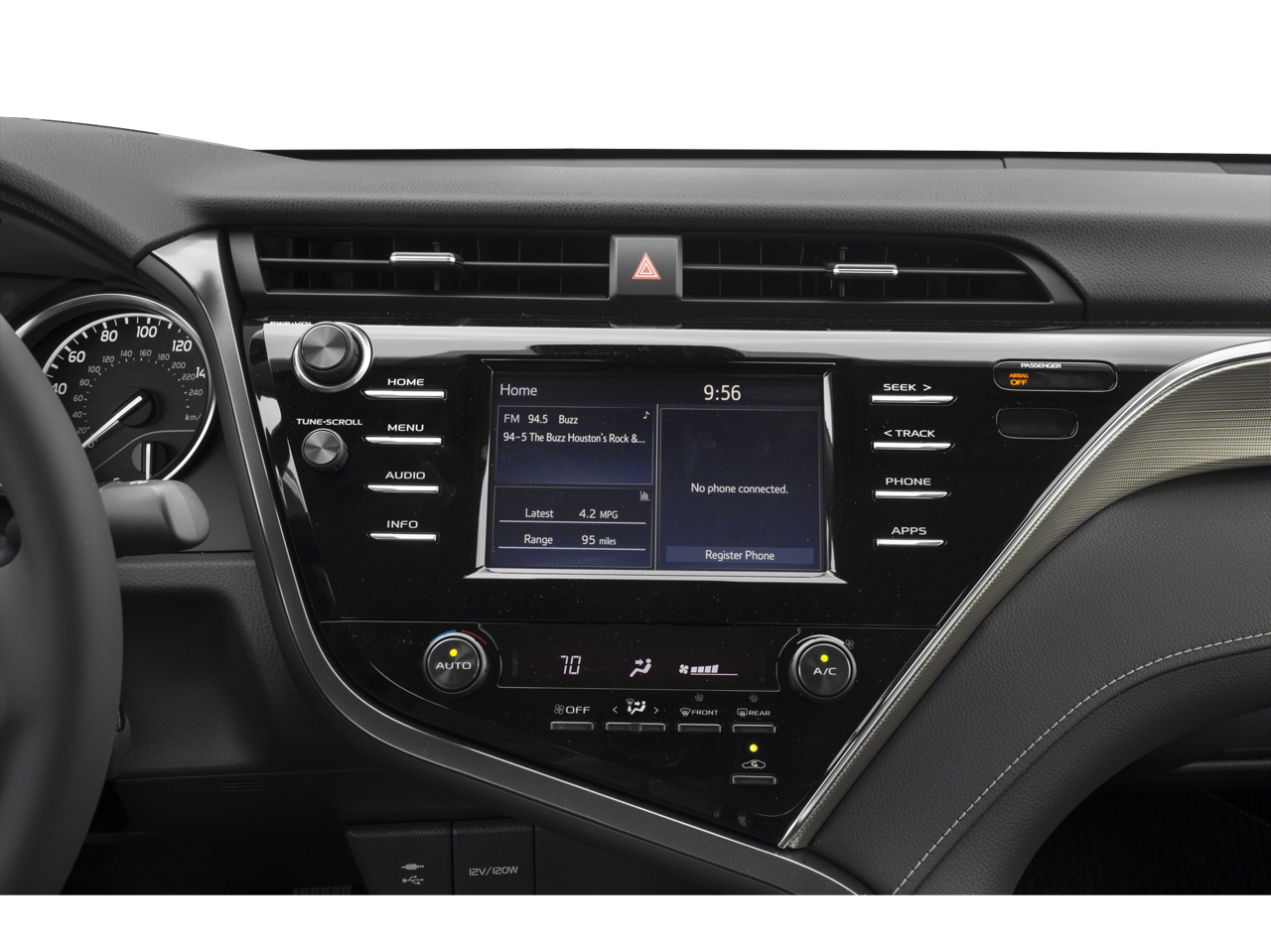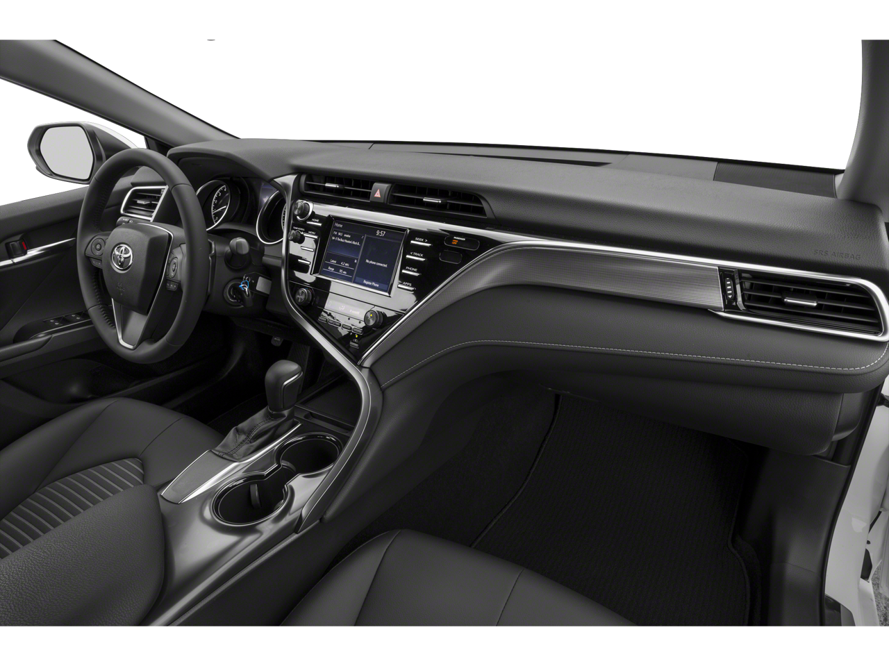 Our dealership has already run the CARFAX report and it is clean. A clean CARFAX is a great asset for resale value in the future. This mid-size car features a hands-free Bluetooth® phone system. Protect this mid-size car from unwanted accidents with a cutting edge backup camera system. This vehicle keeps you comfortable with Auto Climate. The leather seats in this mid-size car are a must for buyers looking for comfort, durability, and style. The Toyota Camry offers Apple CarPlay for seamless connectivity. This mid-size car is front wheel drive. This vehicle has a 4 Cyl, 2.5L high output engine. Set the temperature exactly where you are most comfortable in this model. The fan speed and temperature will automatically adjust to maintain your preferred zone climate. Impresses the most discerning driver with the deep polished blue exterior on it. The Electronic Stability Control will keep you on your intended path.