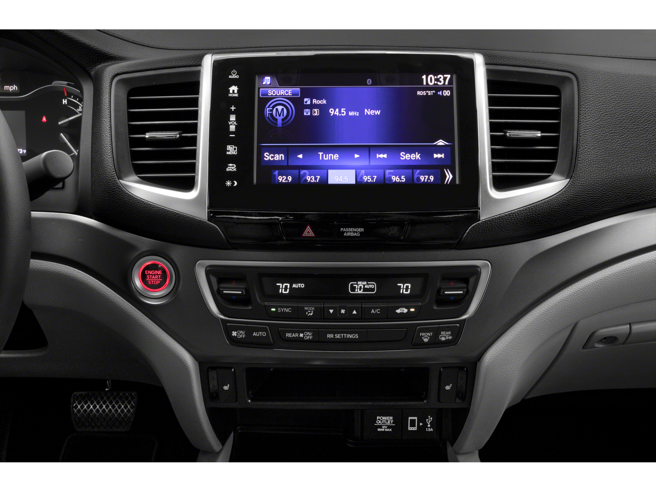 - Radio: AM/FM/MP3 -inc: 200-watt audio system, 8" display audio w/high-resolution electrostatic touch-screen and customizable feature settings, 7 speakers including subwoofer, Bluetooth® streaming audio, auxiliary input jack, Radio Data System (RDS), speed-sensitive volume compensation (SVC), Apple CarPlay, Android Auto, HondaLink, SMS text message function, 1.5-amp USB smartphone/audio interface and 2.5-amp USB charging port