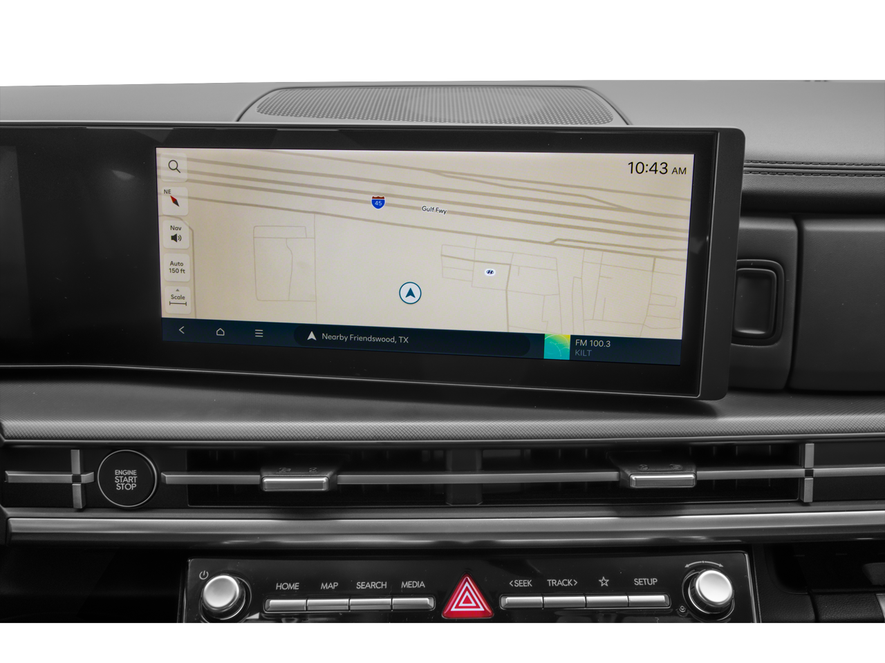 - Radio: AM/FM/HD Display Audio -inc: 6 speakers, 12.3" wide touchscreen display, Apple CarPlay, Android Auto, Bluetooth® hands-free w/wireless audio streaming, dynamic voice recognition, USB connectivity, SiriusXM, Blue Link+ connected car system, over-the-air updating capability, navigation system including traffic flow w/incident data via HD Radio (HERE) and rear seat quiet mode