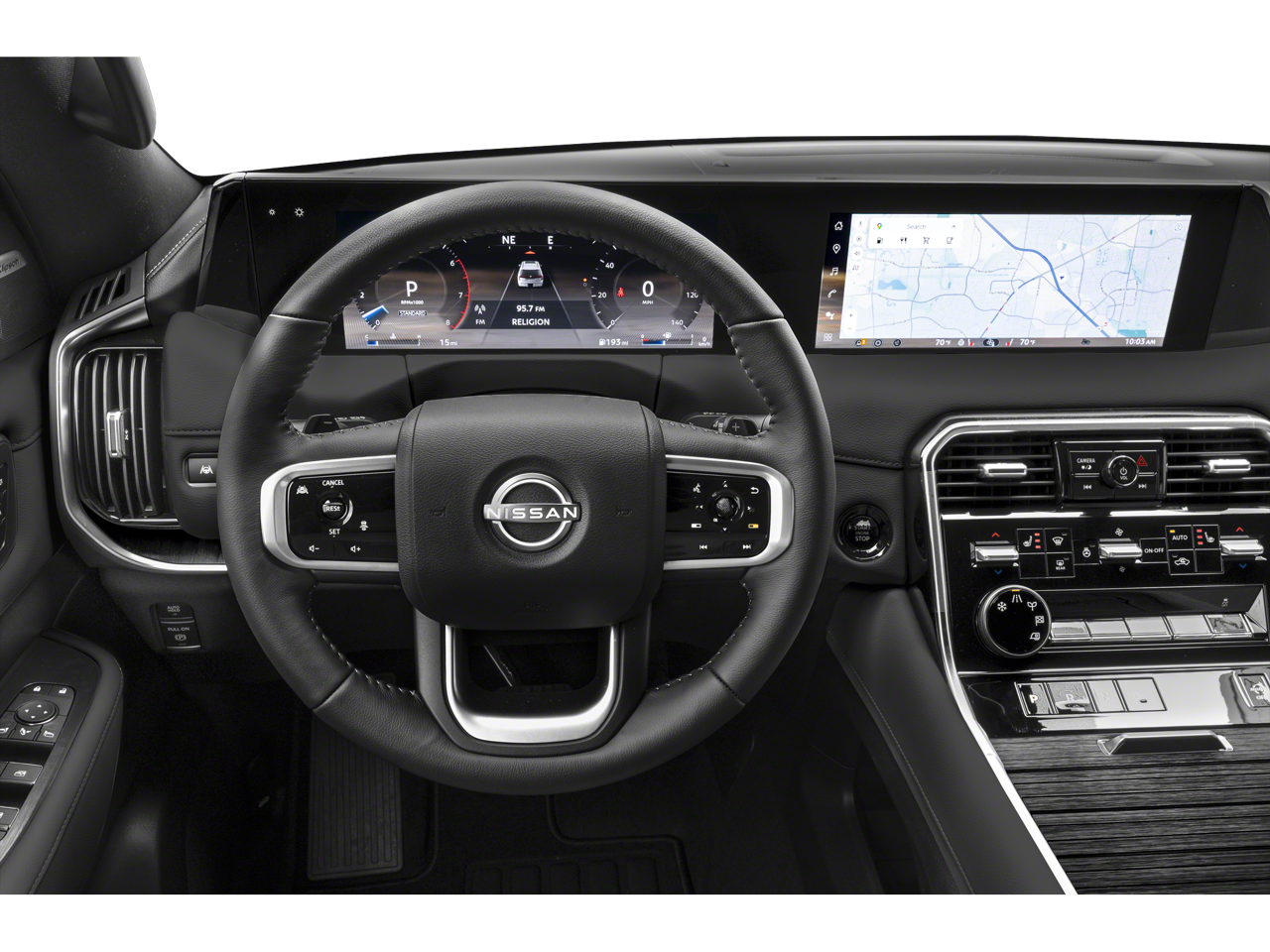 - Radio: NissanConnect w/SiriusXM 360L -inc: 12 speaker Klipsch audio system, 12.3" center touch-screen display, wireless Apple CarPlay and Android Auto, Google Assistant Maps and Playstore data, Alexa built-in, Nissan door to door connected navigation w/traffic information, Bluetooth® hands-free phone system, Bluetooth® streaming audio and messaging, voice recognition for audio features, hands-free text messaging assistant, Siri Eyes Free, USB port for compatible devices, advanced audio features, in-car 4G Wi-Fi hotspot and hybrid radio